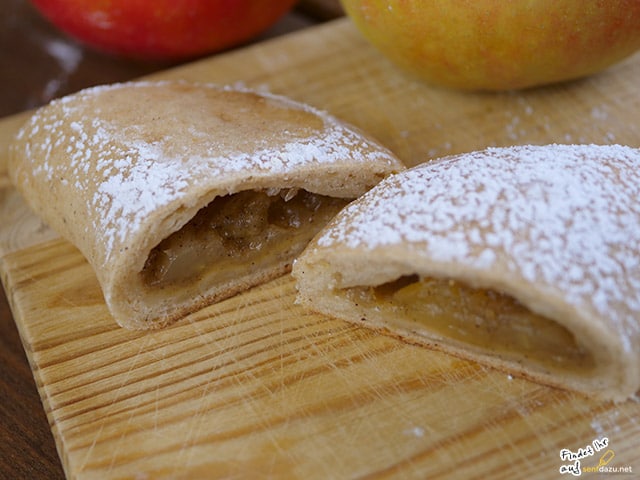 P.S.: Mit diesem Rezept kann man bestimmt 12-24 Stücke hin bekommen. Es liegt natürlich daran, wie große die Apfeltaschen haben werden.
